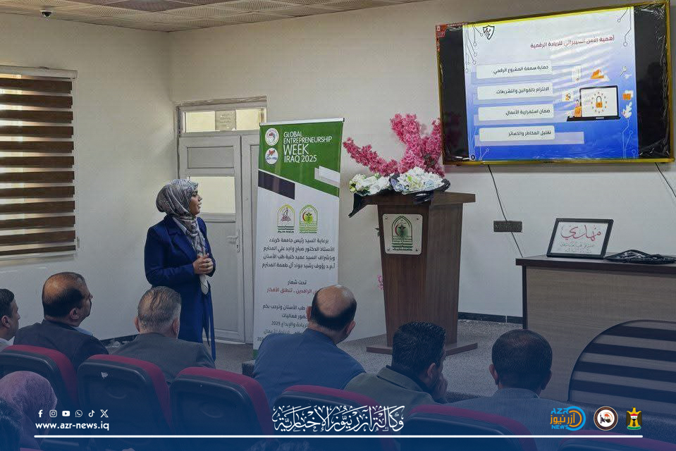 محاضرة في جامعة كربلاء تتناول التحول الرقمي والأمن السيبراني ضمن أسبوع الريادة