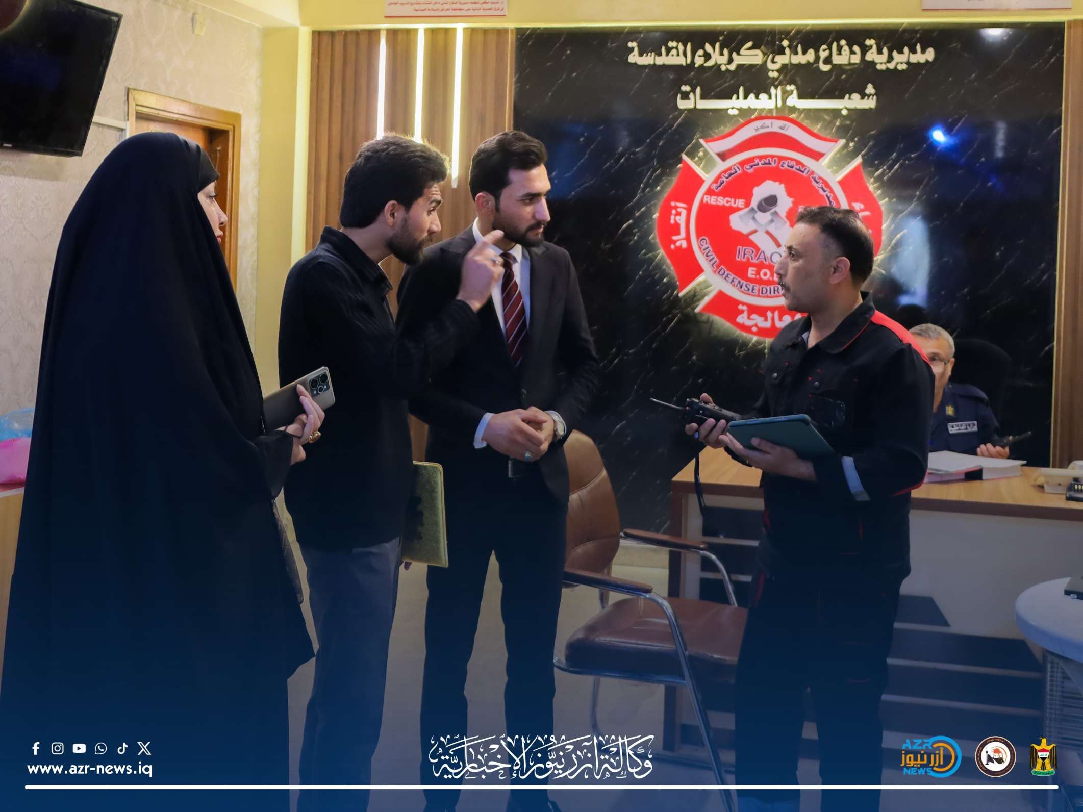 كربلاء – في إطار تعزيز الشفافية المؤسسية وتسليط الضوء على جاهزية المنظومة الخدمية، أجرينا جولة ميدانية داخل غرفة العمليات الخاصة بمديرية الدفاع المدني في محافظة كربلاء، برفقة مسؤول العلاقات والإعلام السيد جعفر الحسيني، وذلك بعد استحصال الموافقات الرسمية من مدير المديرية اللواء عباس الربيعي.