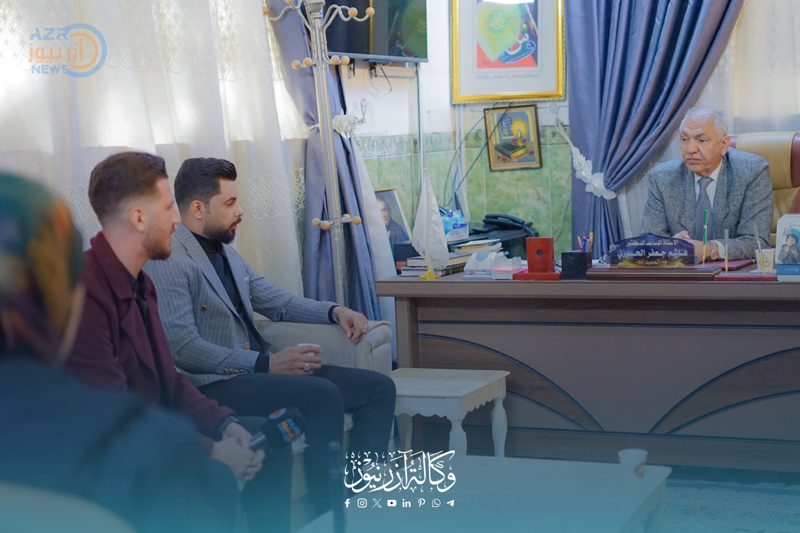 بإطار تعزيز العلاقات الأكاديمية والمهنية، قامت وكالة آزر نيوز الإخبارية المقر العام في كربلاء، بزيارة رسمية إلى جامعة أهل البيت عليهم السلام، حيث التقى وفد الوكالة برئاسة مسؤول قسم العلاقات العامة الإعلامي أحمد الخزعلي والإعلامي محمد مثنى المرياني، مع الأستاذ المساعد الدكتور هاشم جعفر الحيدري، عضو هيئة التدريس في قسم اللغة العربية بكلية الآداب.