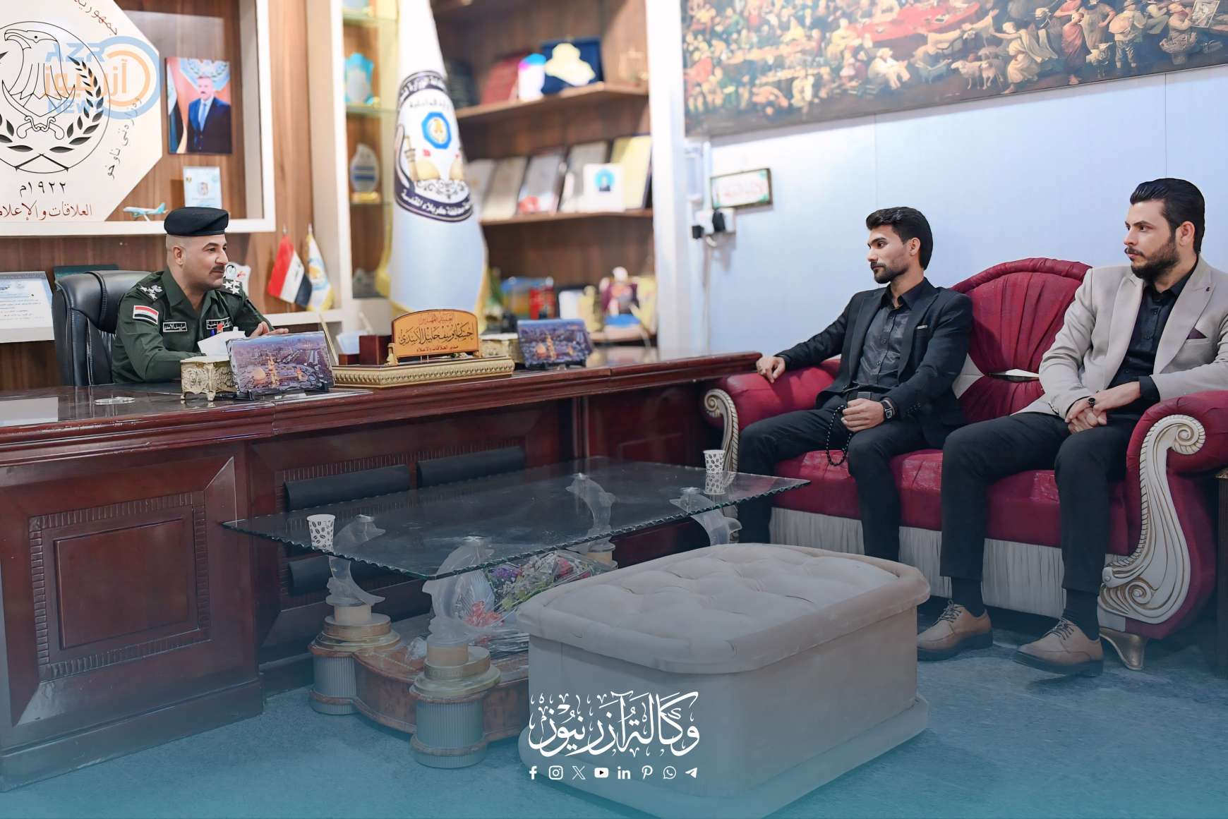نفّذت وكالة آزر نيوز الإخبارية - مكتب كربلاء، زيارة عمل إلى قيادة شرطة محافظة كربلاء، قسم العلاقات والإعلام، جرى خلالها لقاء رسمي مع مدير القسم الدكتور المهندس العميد إحسان الأسدي، وتكريمه تثمينًا لجهوده البارزة في تعزيز السلامة الأمنية وتوطيد قنوات التواصل بين المؤسسات الإعلامية والأجهزة الأمنية، بما يدعم بيئة عمل مستدامة ذات تأثير إيجابي على الرأي العام.